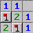 Und weiter kann man kombinieren: Das Feld direkt über der Mine muß auch eine Mine sein, weil links neben der Mine ja ne Zwei steht, und das ist das einzige Feld, das für diese zweite Mine noch in Frage kommt! Also: Mit rechter Maustaste markieren.